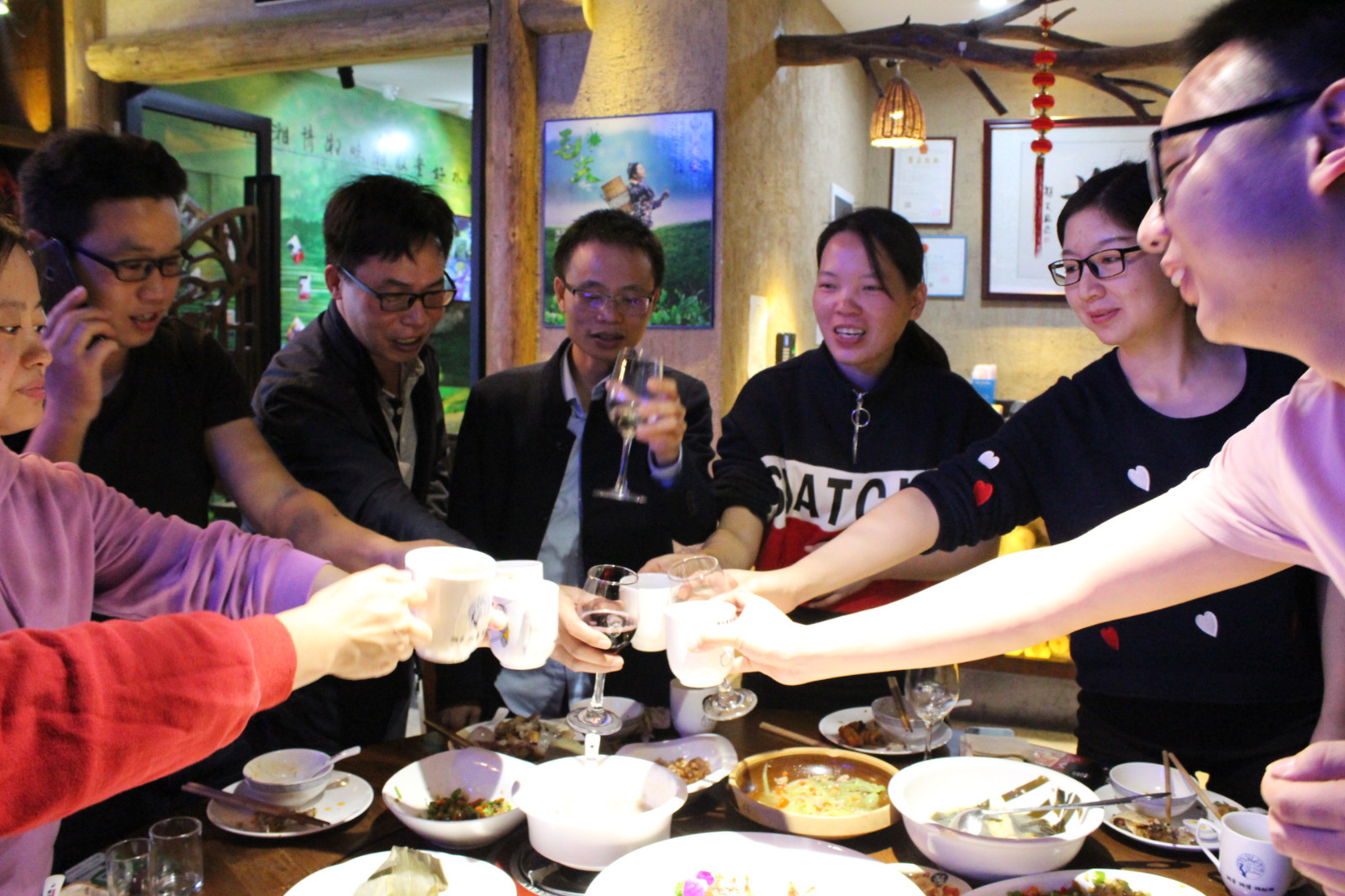 傍晚時(shí)分,在東莞市財(cái)富大廈湘樹林飯店舉辦晚宴,運(yùn)動了一下午大家早就餓了,看著一桌桌豐盛的菜肴。大家都沒了平常的矜持,盡情的吃喝。毫無包袱,深深感受到微圖”這個(gè)大家庭所有同仁的關(guān)愛,溫暖的場景與燈光融合在一起,繪制成一副其樂融融的畫面。