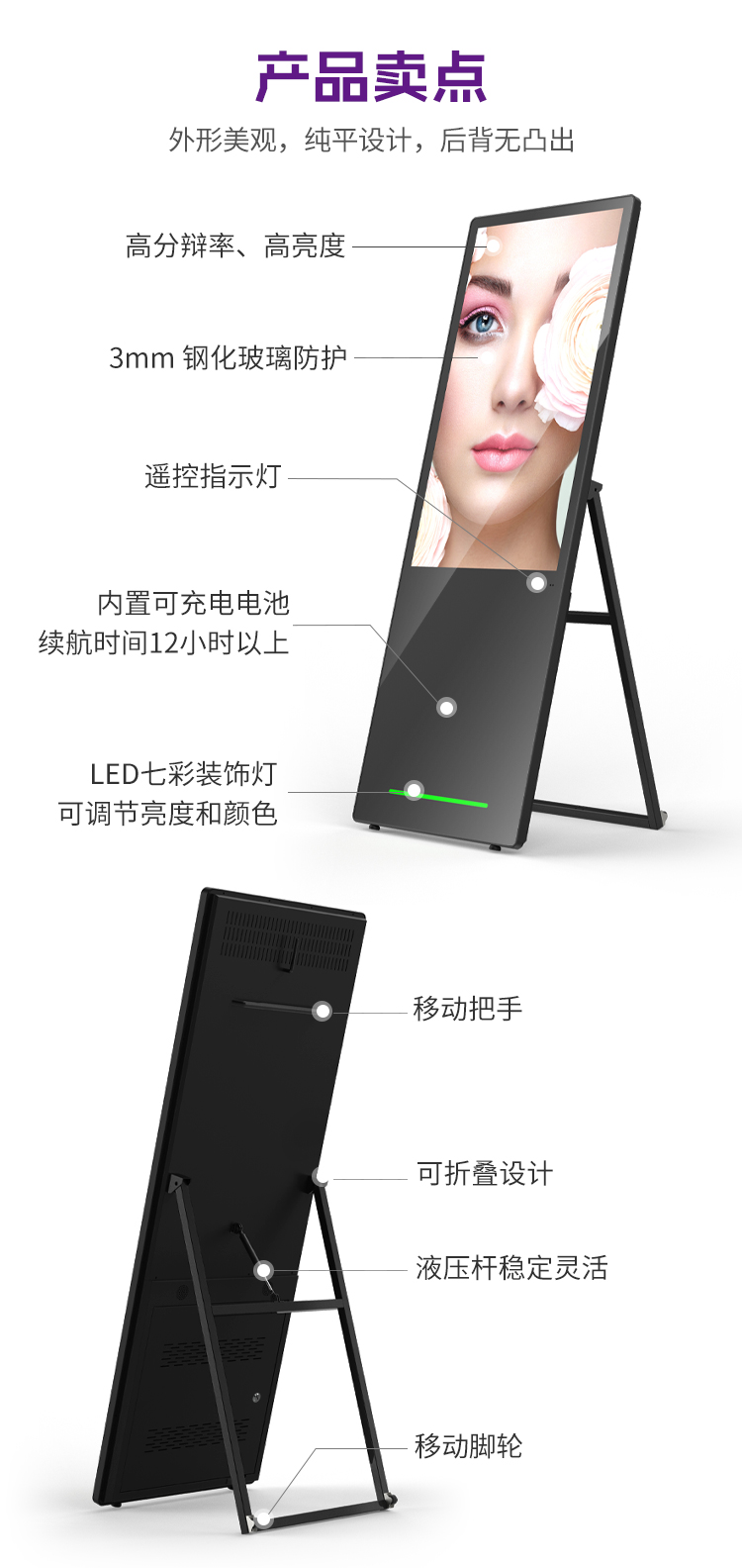 43寸便攜式水牌廣告機(jī)